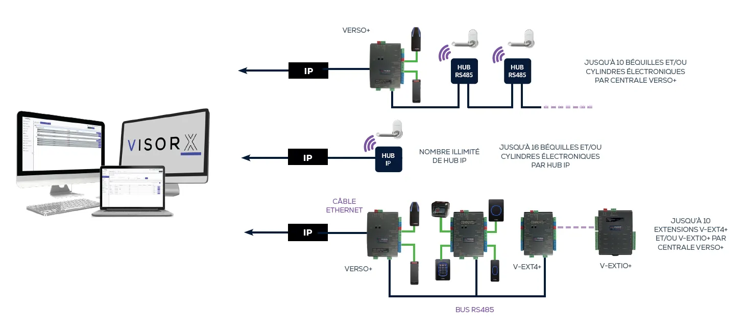 - Jusqu'à 10 extensions V-EXT4+ et/ou V-EXTIO par centrale VERSO+