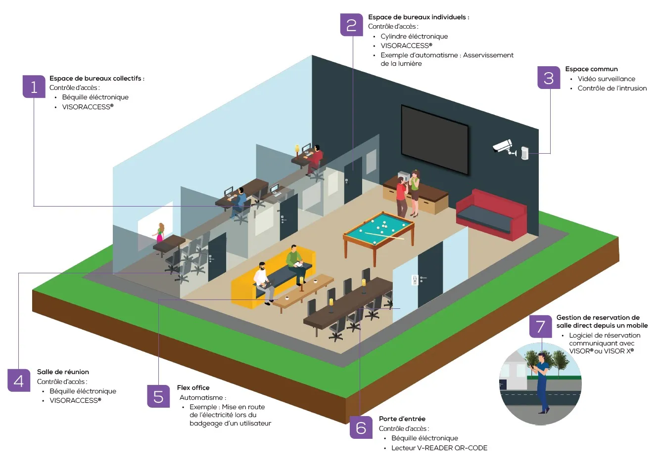 Sécurisez toutes vos infrastructures de coworking : espaces de travail partagés, salles de réunion, bureaux privés, espaces communs, etc.